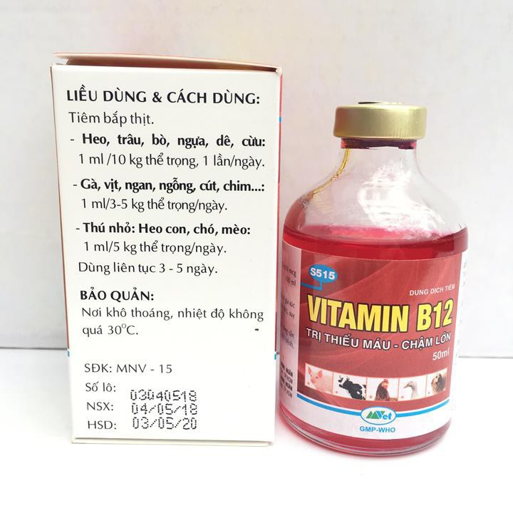 [SIEURE] Vitamin B12 trị bệnh thiếu máu cho động vật, giải độc cho cây chai 50ml hàng đẹp, phân phối chuyên nghiệp.