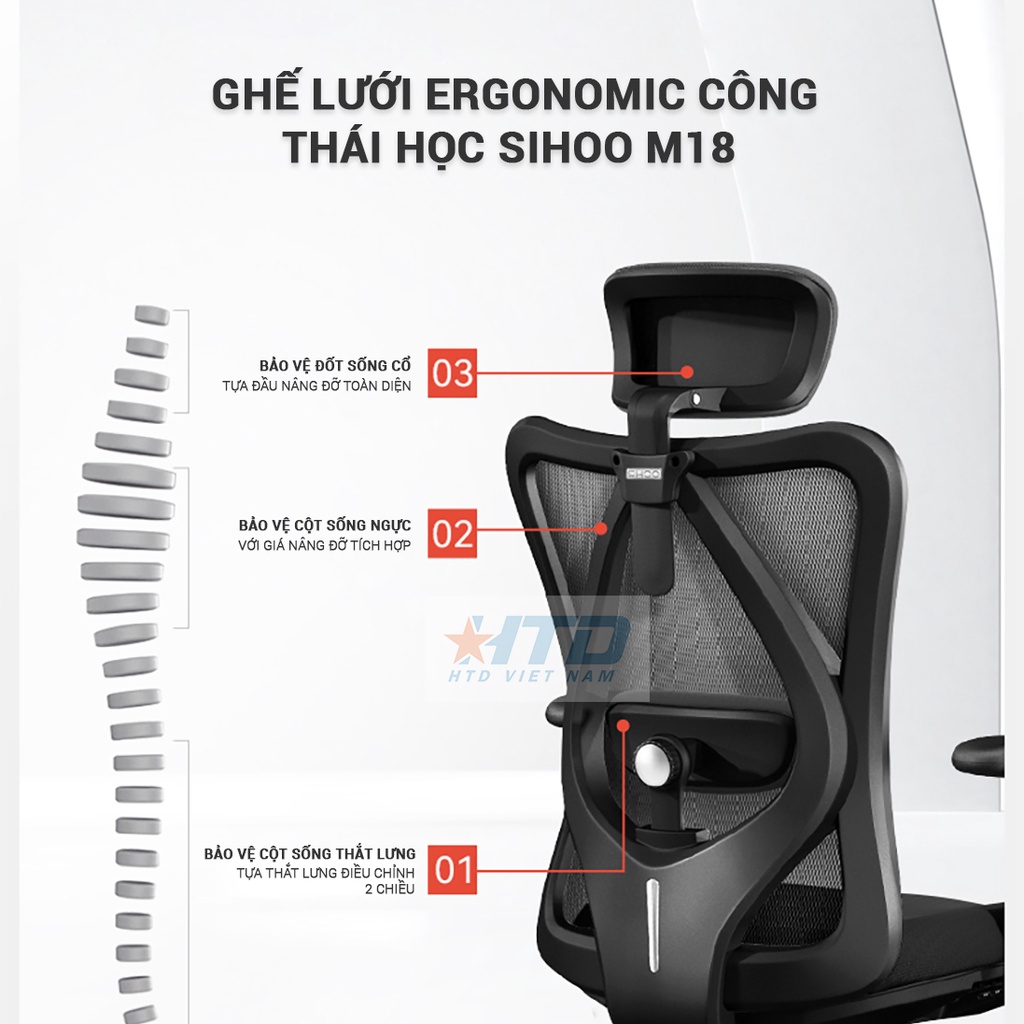 SIHOO M18 - ghế công thái học Egronomic full lưới thoáng khí, ghế văn phòng điều chỉnh thắt lung bảo vệ cột sống