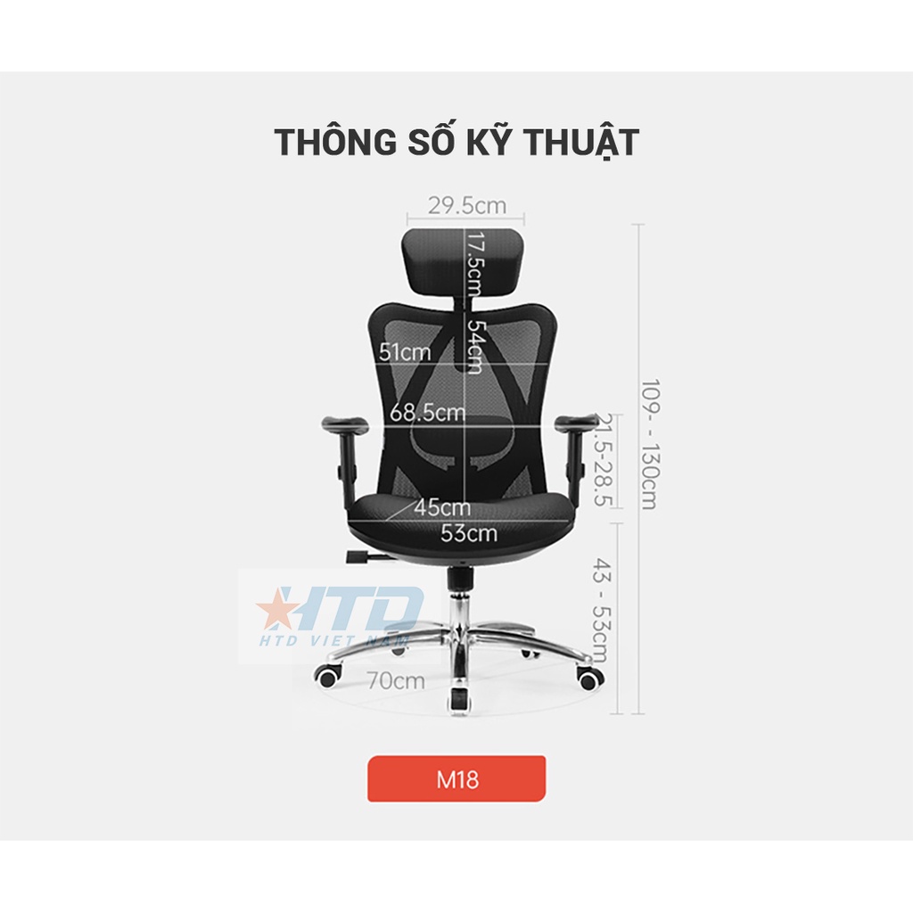SIHOO M18 - ghế công thái học Egronomic, ghế văn phòng bảo vệ cột sống | HTDVN