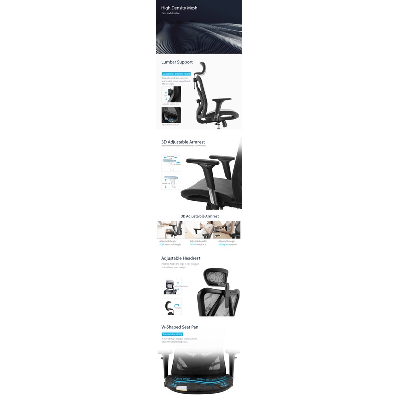 SIHOO M57 - Ghế xoay văn phòng công thái học Ergonomic, Full lưới thoáng khí, Điều chỉnh thắt lưng bảo vệ cột sống️ Lưới lưng và ghế ngồi in 3D mát mẻ, dễ chịu, thoải mái trong nhiều giờ liên tục