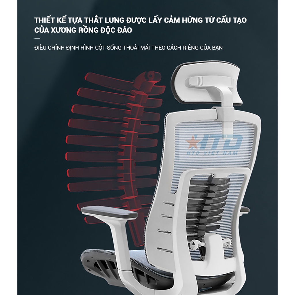 ✅ Tựa lưng thiết kế mô tả cấu tạo xương người với các nhánh xương chạy dọc nâng đỡ cột sống, dàn đều áp lực