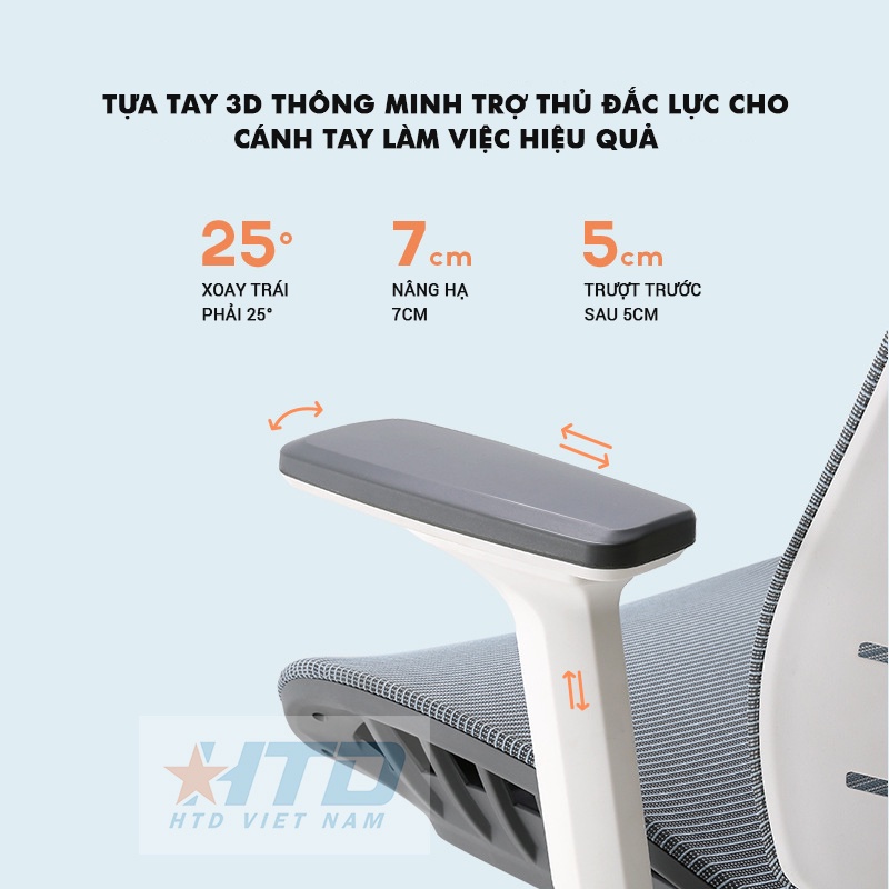 ✅ Tựa tay 3D có thể nâng hạ chiều cao 7cm , trượt về phía trước-sau 5cm , xoay trái-phải 25°