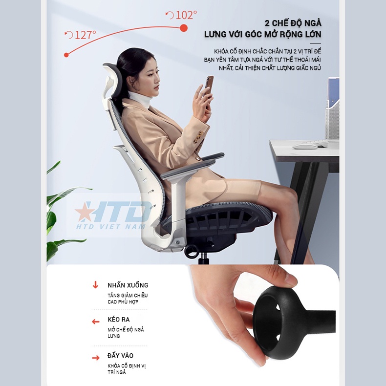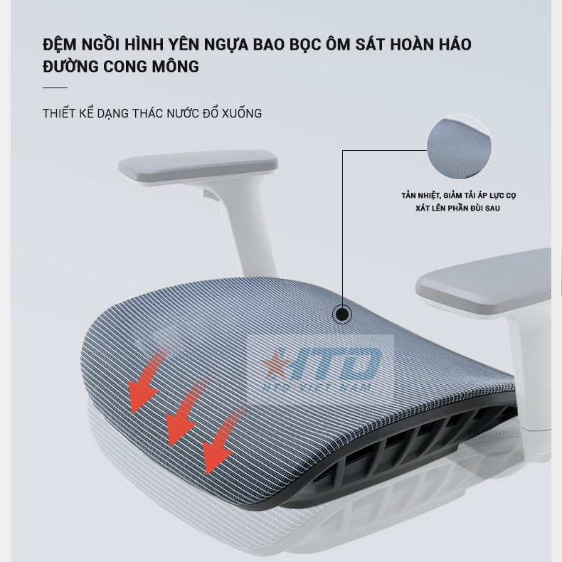 ✔ Lưng và ghế ngồi làm bằng lưới cao cấp, đàn hồi tốt, thân thiện với làn da