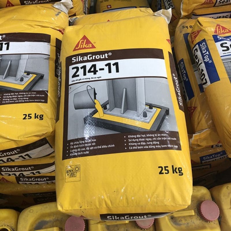 Sika grout 214-11 hay còn gọi là vữa tự chảy không co ngót cường độ cao, sản phẩm được chế biến từ xi măng cải tiến, các khoáng chất silicate đặc biệt và các loại phụ gia chuyên dụng. Khi thi công sản phẩm chỉ cần trộn với nước theo tỉ lệ của nhà sản xuất đưa ra là có thể thi công được ngay. Được thi công với các dụng cụ đơn giản, sản phẩm không có mùi, không độc với sức khoẻ người thi công. Vì thế Sika 214- 11 là lựa chọn hàng đầu trong các hạng mục xây dựng nhà ở và công trình xây dựng lớn nhỏ trong cả nước.