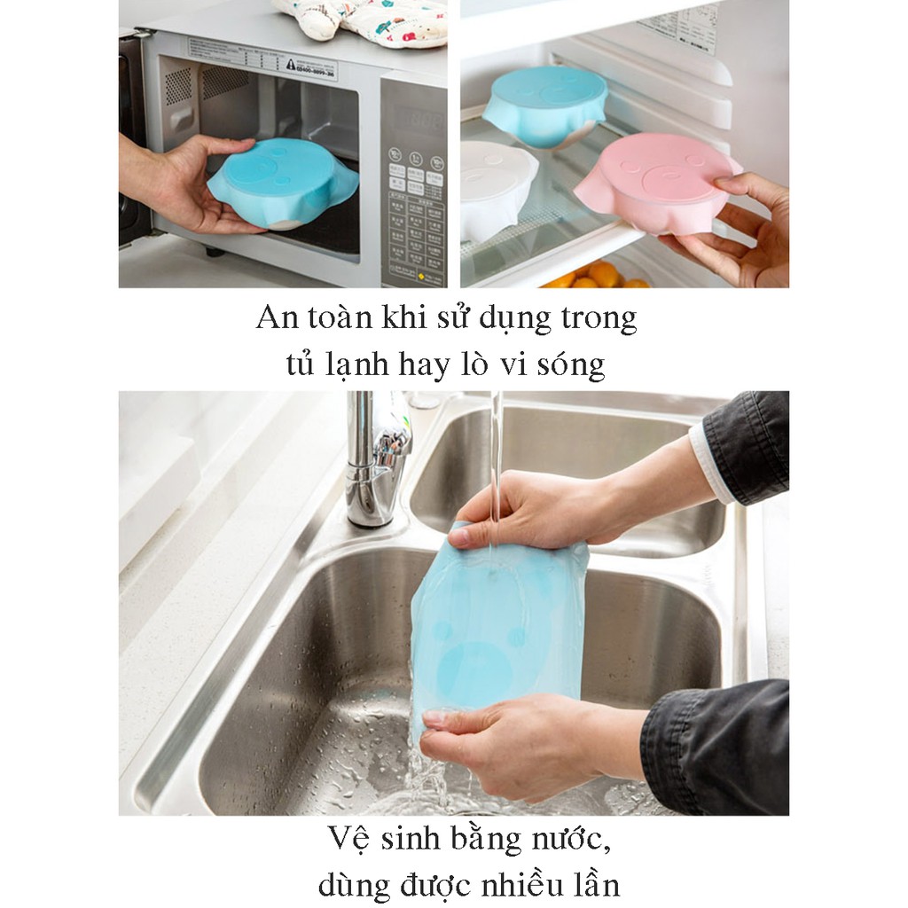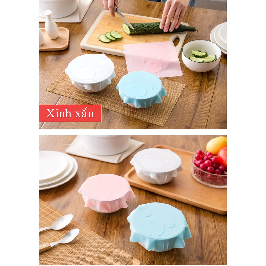Khi dùng để bọc bát thì cần lau khô bát, tấm silicone để tăng độ bám dính, kéo 2 đầu đối xứng 1 lực nhẹ rồi miết vào thành bát, cuối cùng miết quanh miệng bát cho kín.