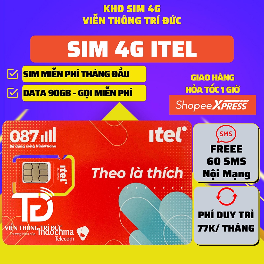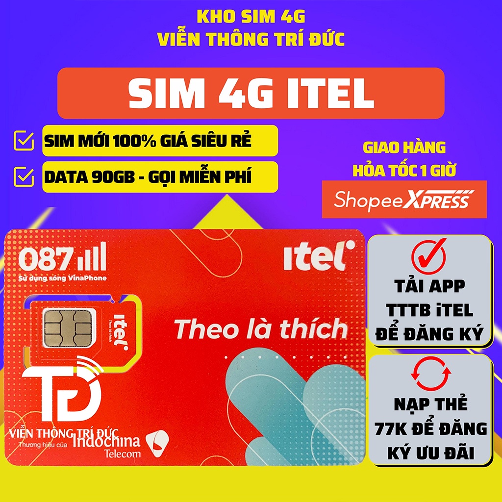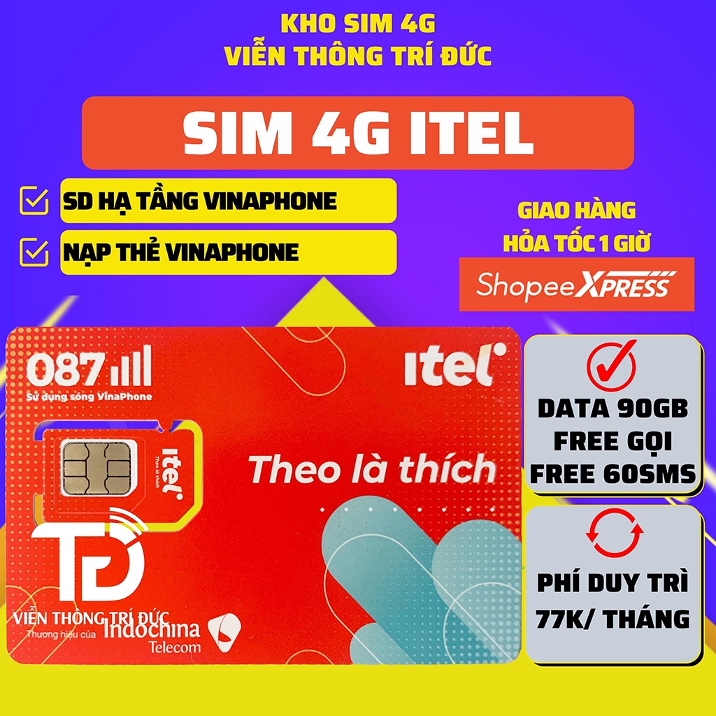 Sim 4G iTel MAY77 Mạng Vinaphone Data 90Gb/Tháng, Gọi Miễn Phí VinaPhone, Free 60 SMS, Sim 4G Phát Wifi Giá Rẻ👉 VIỄN THÔNG TRÍ ĐỨC LÀ ĐẠI LÝ PHÂN PHỐI SIM CỦA CÁC NHÀ MẠNG VIETTEL - VINAPHONE - ITEL - VIETNAMOBILE - MOBIFONE VỚI PHƯƠNG CHÂM UY TÍN LÀM NÊN THƯƠNG HIỆU