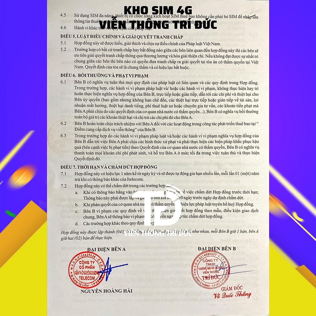 - Sim gửi đi đã được shop đóng logo "Viễn Thông Trí Đức", có camera quay đóng gói hàng đầy đủ. Để đảm bảo mọi quyền lợi quý khách vui lòng quay lại video khi bóc mở hàng để làm căn cứ đổi trả nếu cần.