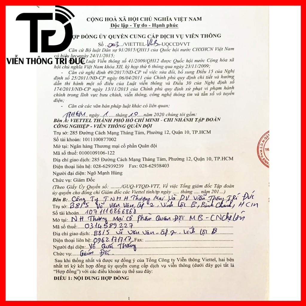 - Sim gửi đi đã được shop đóng logo "Viễn Thông Trí Đức", có camera quay đóng gói hàng đầy đủ. Để đảm bảo mọi quyền lợi quý khách vui lòng quay lại video khi bóc mở hàng để làm căn cứ đổi trả nếu cần.
