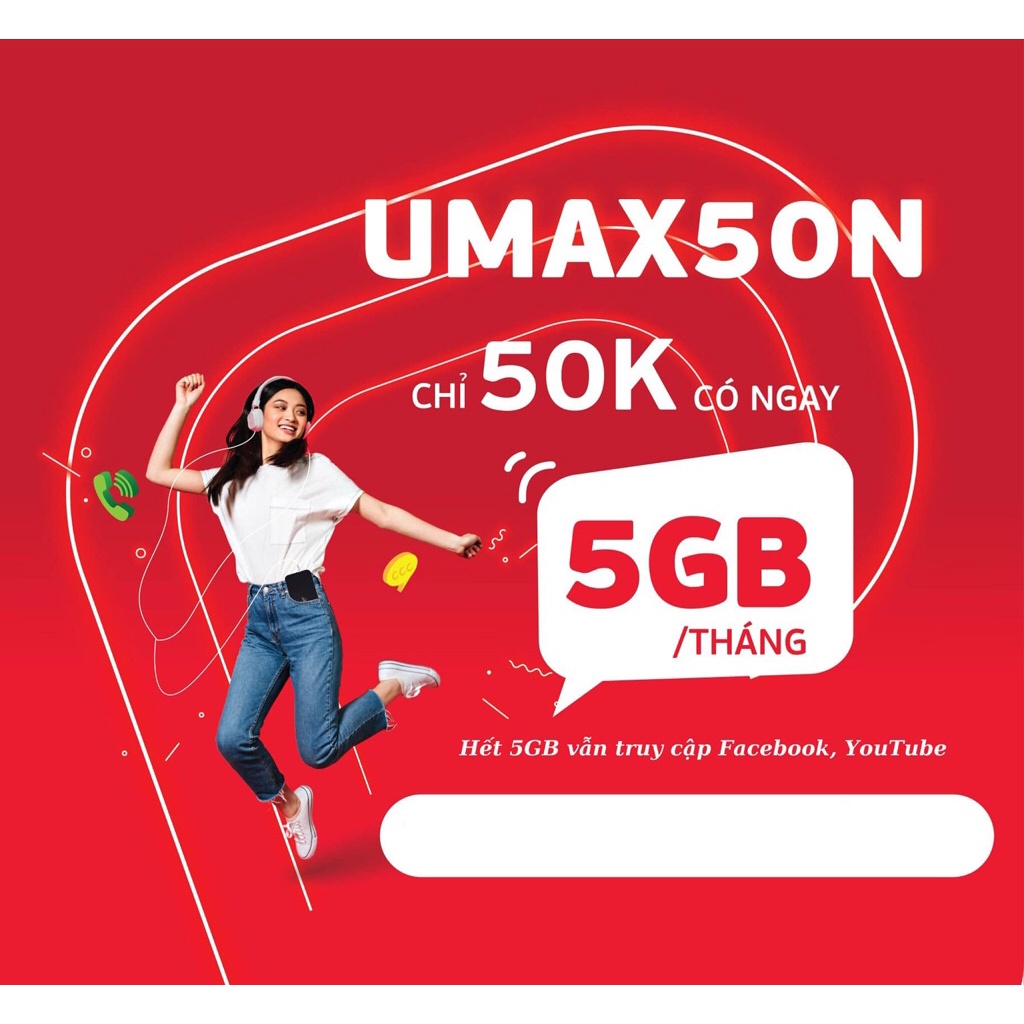 GÓI UMAX50N TẶNG NGAY MỖI THÁNG 5GB DATA TỐC ĐỘ CAO.