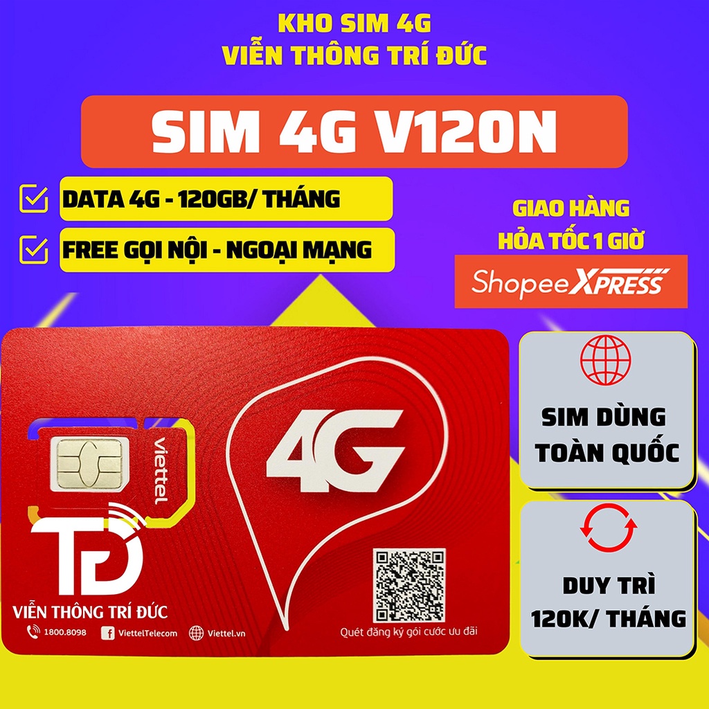 Sim 4G Viettel V120Z/V120N Data 120Gb,Gọi Miễn Phí, Sim Umax50N Không Giới Hạn Data, Phát Wifi Max băng thông, Free 12Th