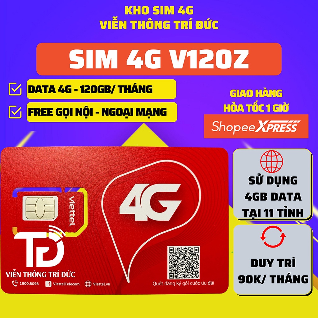 Sim 4G Viettel V120Z/V120N Data 120Gb,Gọi Miễn Phí, Sim Umax50N Không Giới Hạn Data, Phát Wifi Max băng thông, Sim 4G miễn phí Data* * MÔ TẢ SIM 4G V120Z