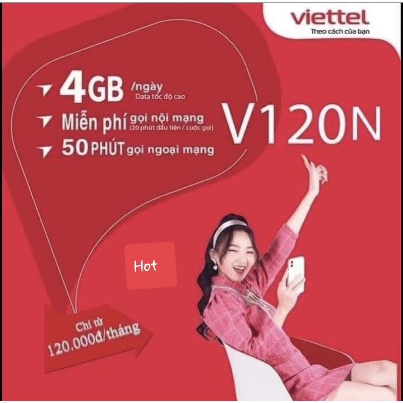 Sim 4G Viettel V90 V120 V120N khuyến mại 120GB , Free gọi nội mạng, ngoại mạng + Quà tặng hấp dẫn