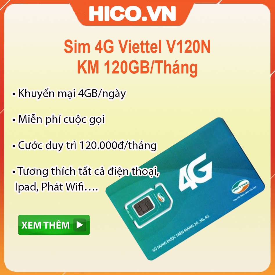 Giới thiệu Sim 4G Viettel V90 V120 V120N khuyến mại 120GB , Free gọi nội mạng, ngoại mạng + Quà tặng hấp dẫn