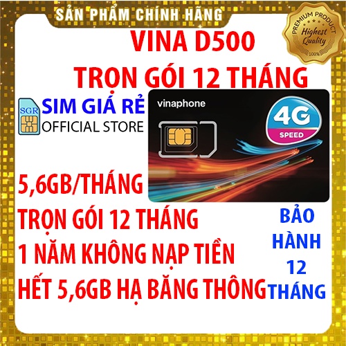 Sim 4G Vina D500 5,6Gb/tháng trọn gói 1 năm không nạp tiền, Shop Sim giá rẻ