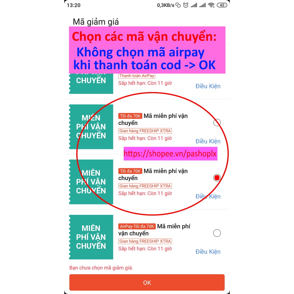 - VUI LÒNG XEM KỸ MÃ ĐƠN KHI NHẬN, HOẶC THANH TOÁN TRƯỚC ĐỂ TRÁNH CÁC TRƯỜNG HỢP LỪA ĐẢO. ( CÁC SHOP LỪA ĐẢO SẼ GỬI COD ĐƠN NGOÀI KHÔNG THÔNG QUA SHOPEE, KHÔNG KHIẾU NẠI ĐỔI TRẢ ĐƯỢC, THANH TOÁN TRƯỚC SẼ KO ẢNH HƯỞNG)