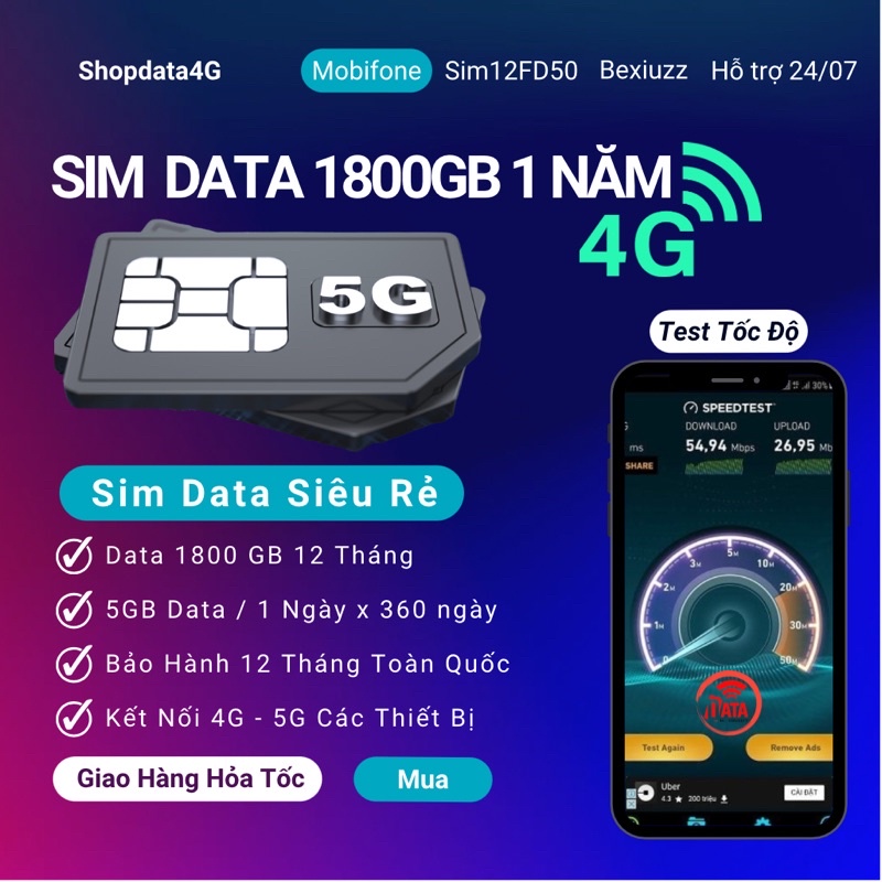 6️⃣ Loại 6 : Sim Free 4G (Mobifone) 12FD50 : Gói 12 Tháng