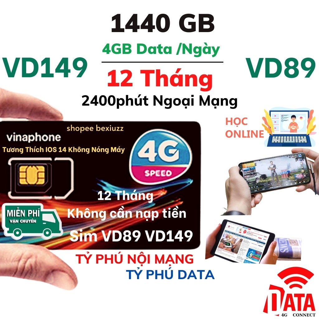 Giới thiệu Sim 4G Vinaphone VD89 VD149 Miễn Phí Data 2GB - 4GB 1 Ngày Tốc Độ Cao Và Gọi 12 Tháng Không Cần Nạp Tiền