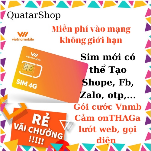SIM 4G VNMB 6GB/ngày, Không giới hạn vào mạng, Gói Shope, Cảm Ơn, Trọn Đời 𝑭𝑹𝑬𝑬 𝑺𝑯𝑰𝑷 Có thể Tạo Tài Khoản nhận mã otp