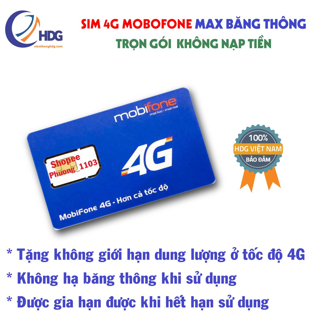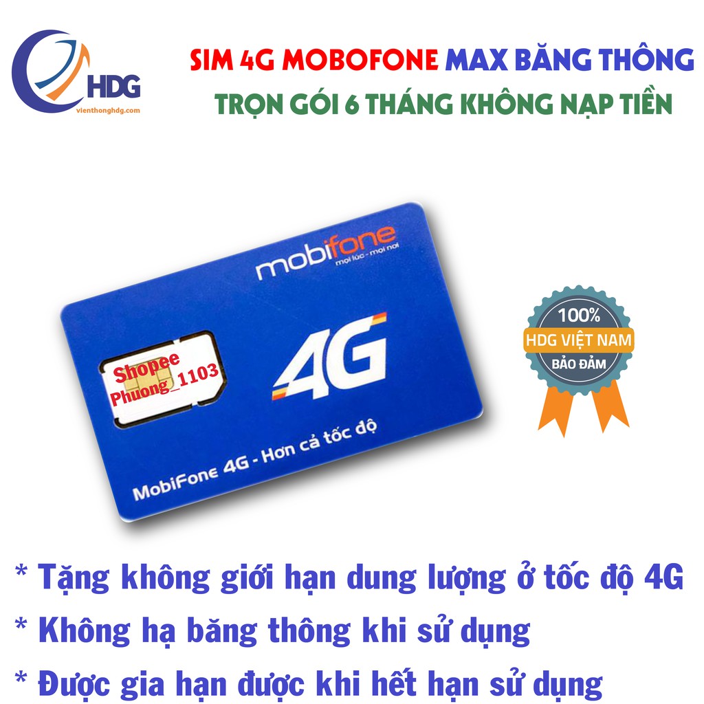 Viễn Thông HDG - chuyên cung cấp : Sim 4g , Bộ phát wifi di động , Usb 3g /4g , Usb đổi IP và Phụ kiện Công NghệHDG xin cung cấp tới khách hàng sim mobifone max băng thông không giới hạn dung lượng :