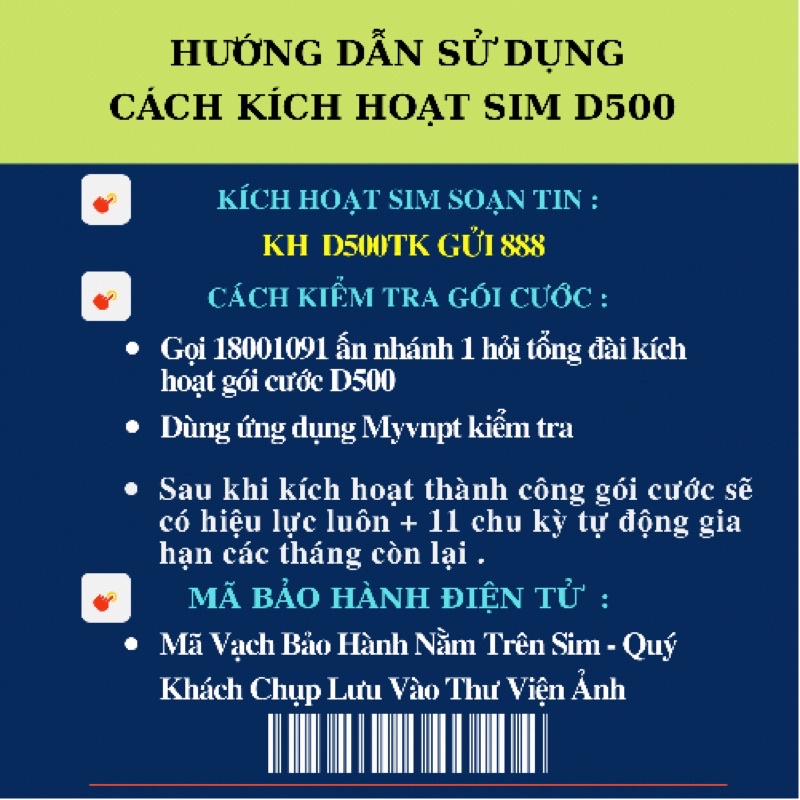 SIM D500 ( Miễn phí 1 năm vào mạng 4G Tốc Độ Cao )Có Video kèm test Tốc Độ Cao , Bảo Hành 12 Tháng