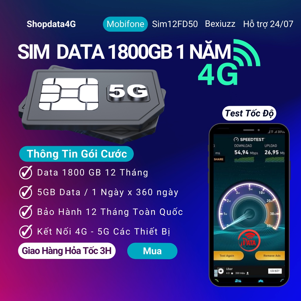 2️⃣ Loại 2 : Sim Free 4G - (SMobi-5GB/1ngày x12T) thuộc nhà mạng Mobifone 12FD50 : Gói 12 Tháng