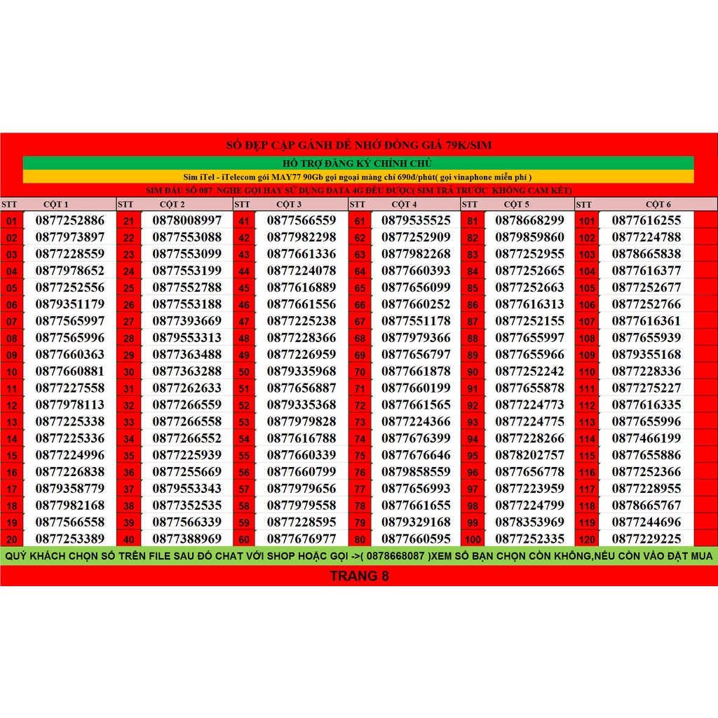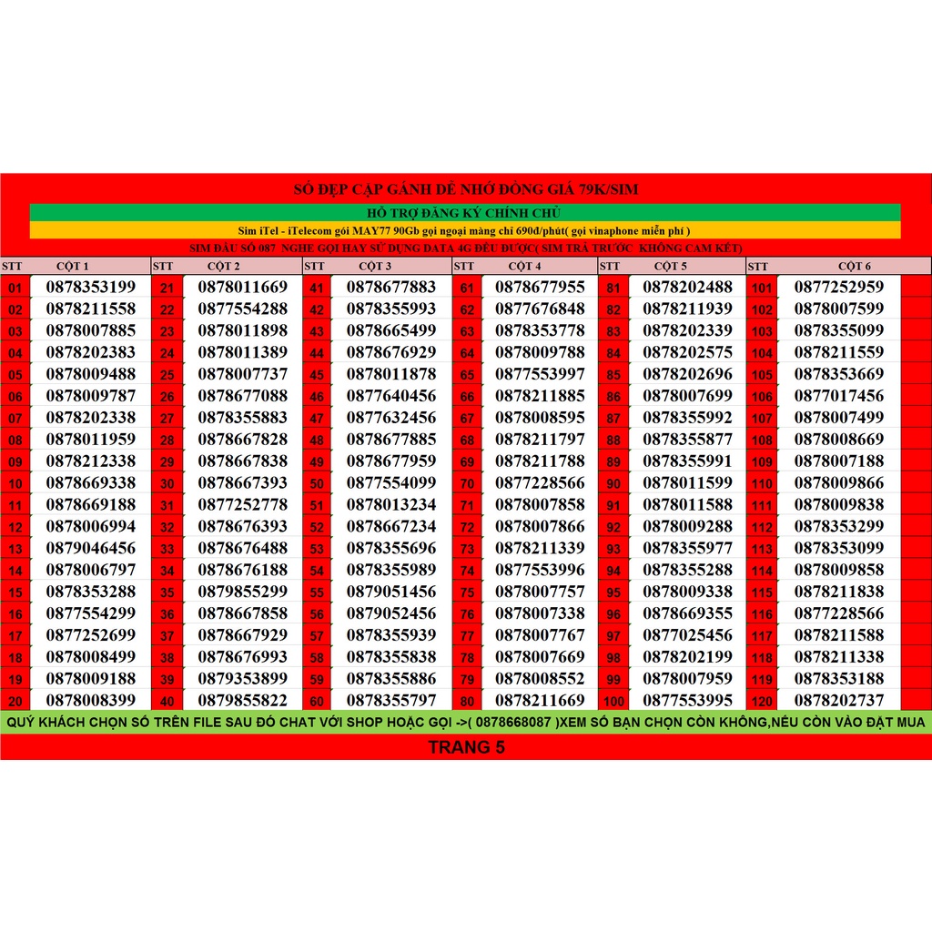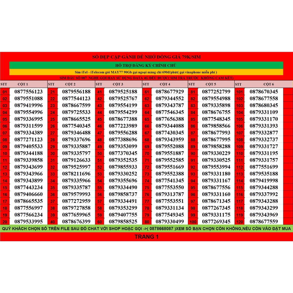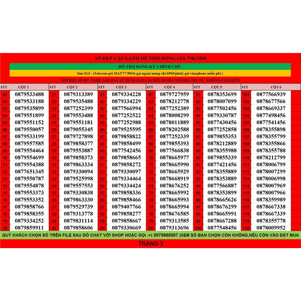 LƯU Ý: GIÁ SIM CÓ TRONG DANH SÁCH