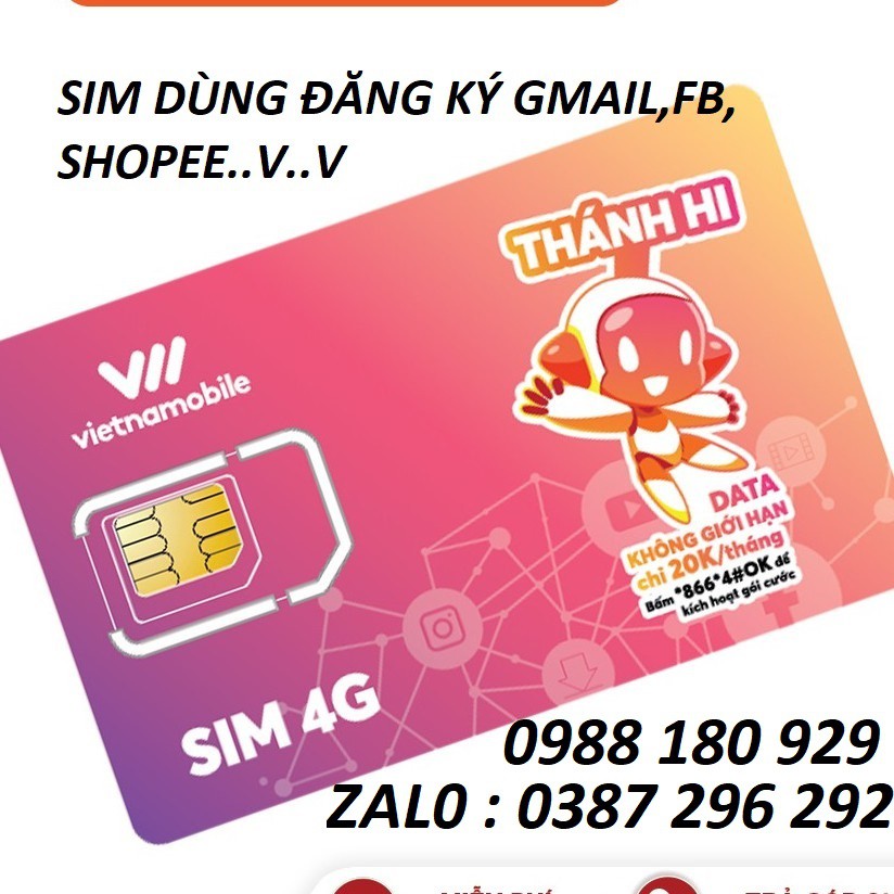 Điện Thoại & Phụ Kiện > Thẻ sim || Sim vietnammobile tạo Gmail, fb,shopeCòn hàng