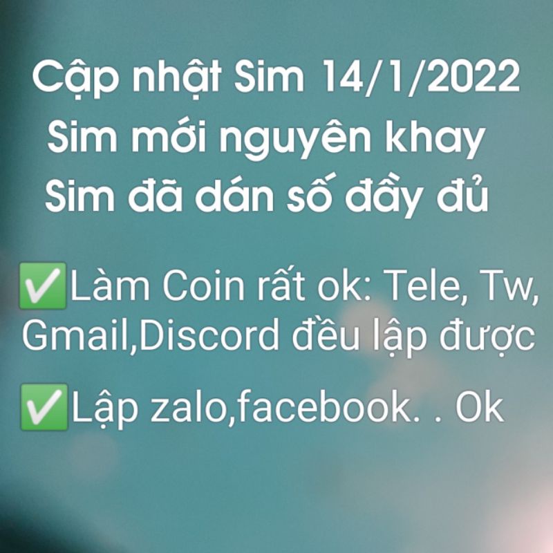 - Sim tạo tài khoản Tele, Tw, Gmail, Shope,zalo,fb, momo...