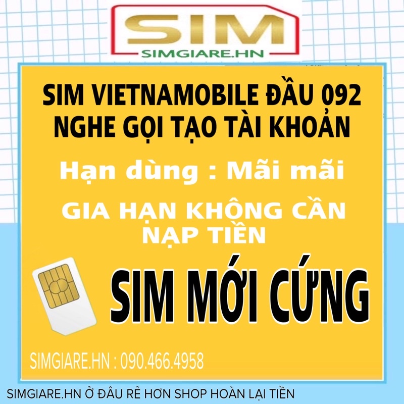 Giới thiệu SIM VIETNAMOBILE NGHE GỌI TẠO TÀI KHOẢN 18K ĐẦU 092