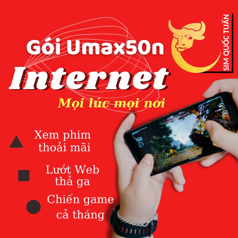 Umax50n - 50.000 đ / 30 ngày là gói cước ưu đãi Data Chỉ với 50.000đ / tháng quý khách sẽ có 5GB truy cập Internet tốc độ cao. Hết tốc độ cao vẫn truy cập vào mạng được (Youtube, Facebook...)