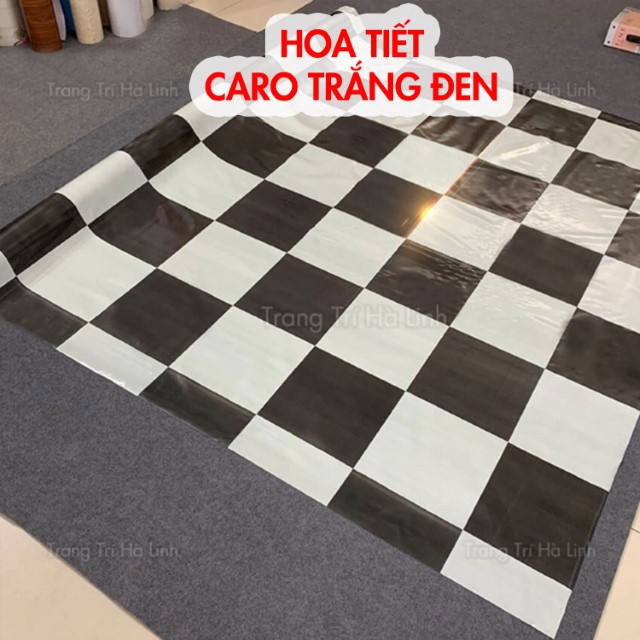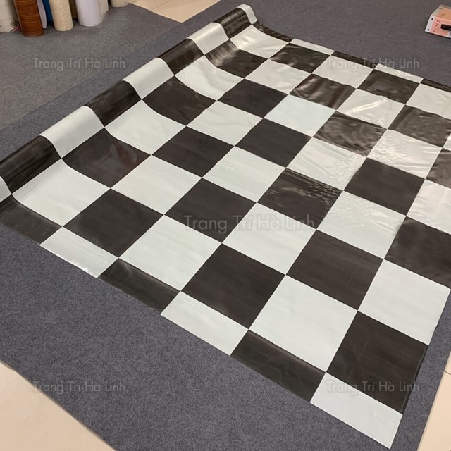 Simili Trải Sàn Nhà, Thảm Nhựa Trải Sàn Giá Rẻ Vân Caro Trắng Đen - Trang Trí Hà Linh