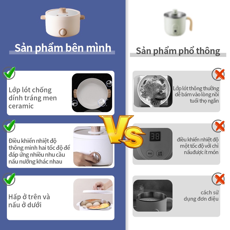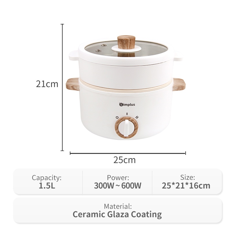 Simplus Nồi hấp điện ẩu điện đa năng nhỏ chống dính điều chỉnh nhiệt độ hai tốc độ bếp nấu lẩu 1.5L