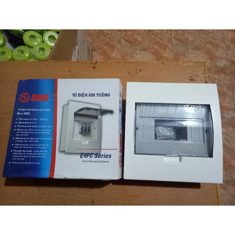 Tủ Điện Nhựa Âm Tường 2~18 Đường CB Sino - Hàng Việt Nam, Chất Lượng Cao - BH 12 ThángTủ điện 2-18 đường Sino E4FC ưu việt với mặt tủ được thiết kế với bề mặt cong tạo nên kiểu dáng trang nhã và sang trọng cho sản phẩm, nắp che tủ làm bằng nhựa Polycarbonate trong suốt chống cháy, chống va đập và thân tủ làm bằng nhựa tự chống cháy.