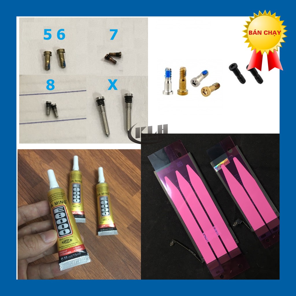 Siu, keo dán pin Iphone. Ốc vỏ đít Iphone 5,6,7,8,x và keo dán màn hình, cảm ứng