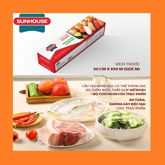 Giới thiệu [ SIZE 30cm ] màng bọc thực phẩm Sunhouses size M 100m - màn bọc PVC bảo quản thức ăn cao cấp