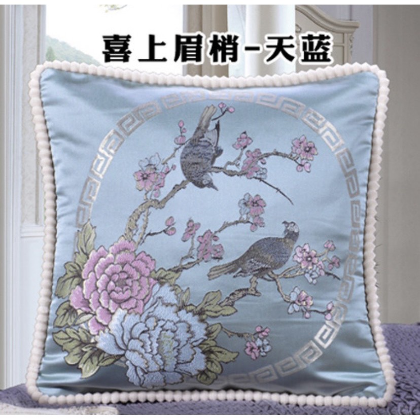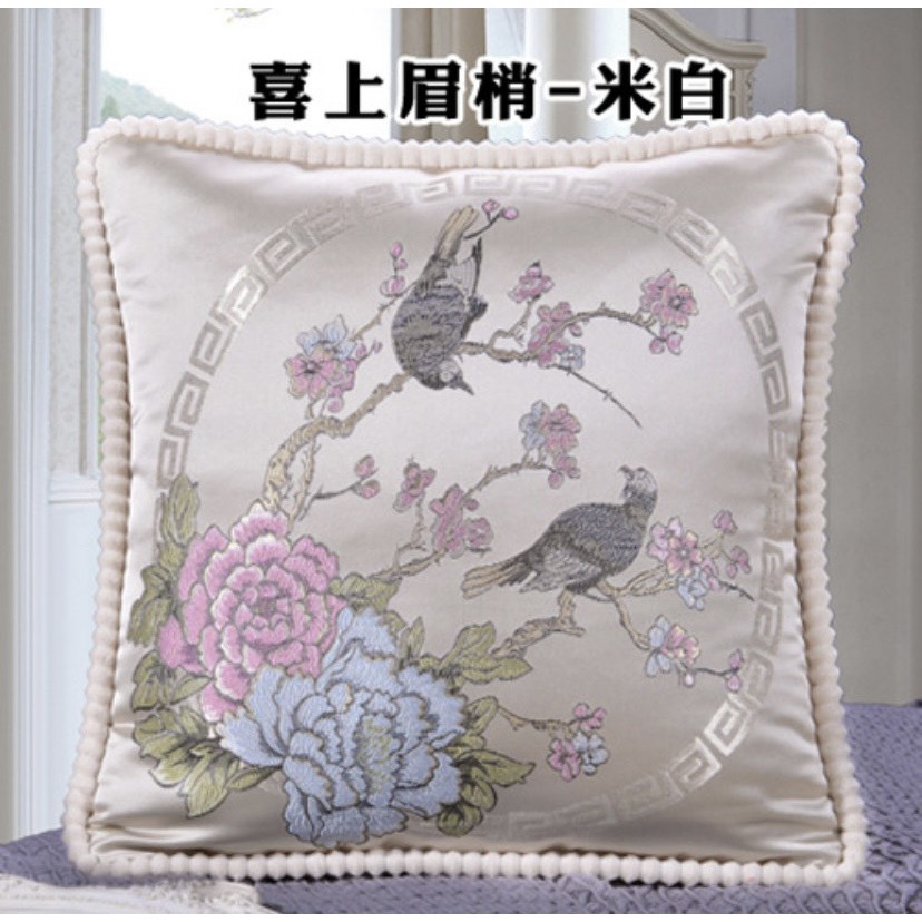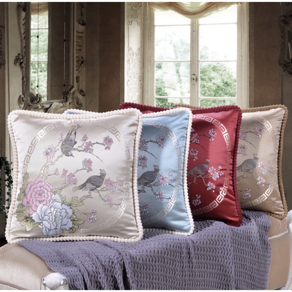 [ SIZE 48x48 CM ] VỎ Gối Tựa Lưng THÊU NHỮNG CHÚ CHIM NỔI CAO CẤP SBK097