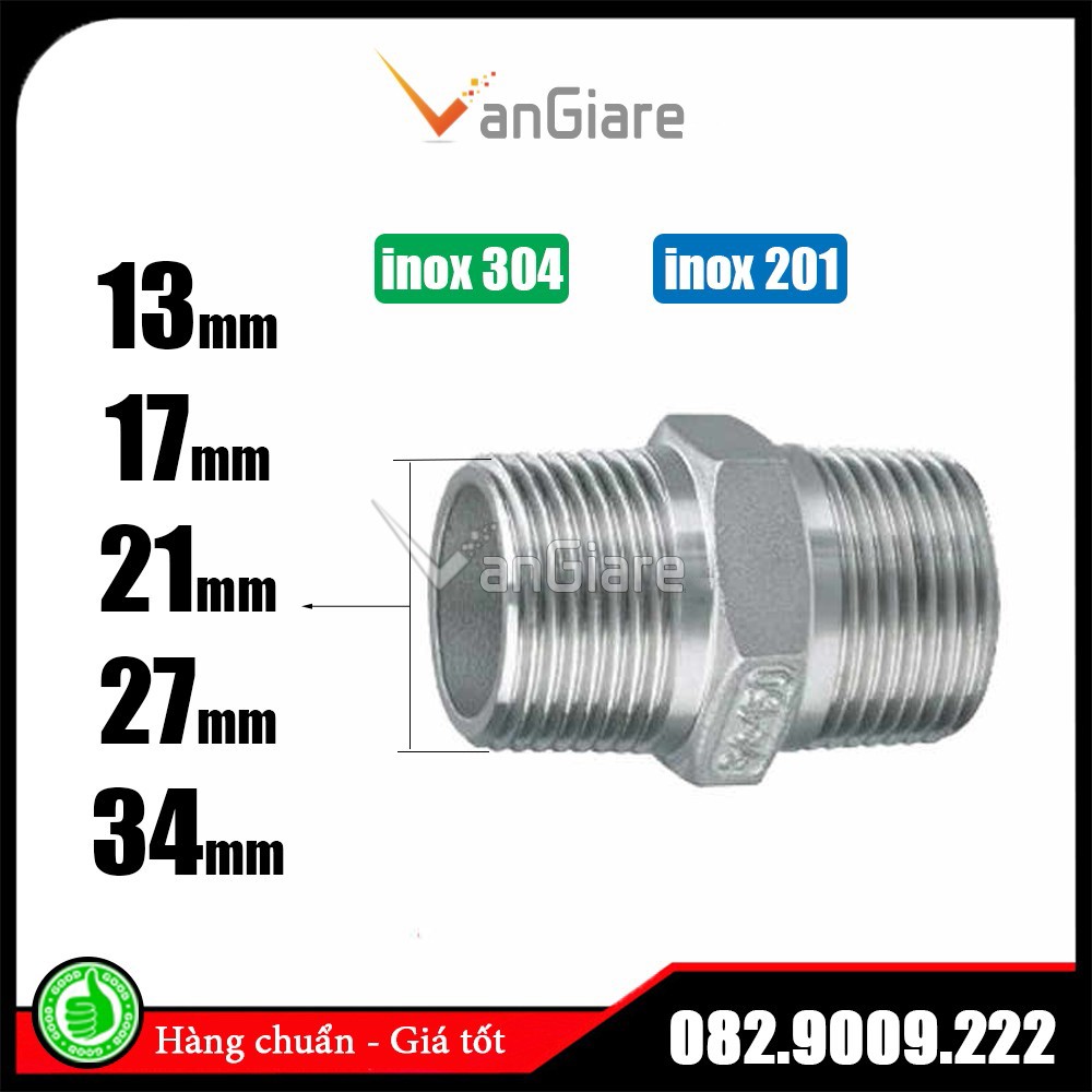 Giới thiệu (đủ size) Kép inox - Nối 2 đầu ren ngoài ống nước phi 13 17 21 27 34