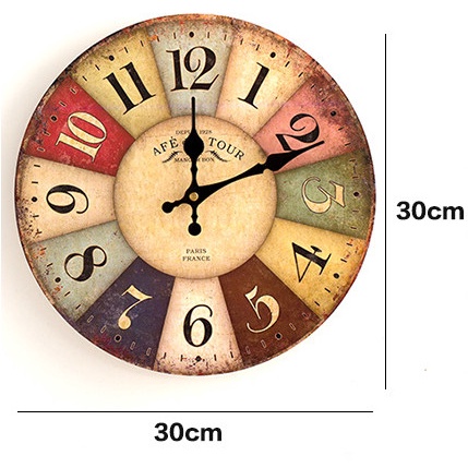 Đồng hồ treo tường cỡ lớn 30cm theo phong cách Vintage thích hợp trang trí phòng khách, phòng ngủĐồng hồ với thiết kế độc đáo, lạ mắt thích hợp trang trí trên tường nhà bạn.