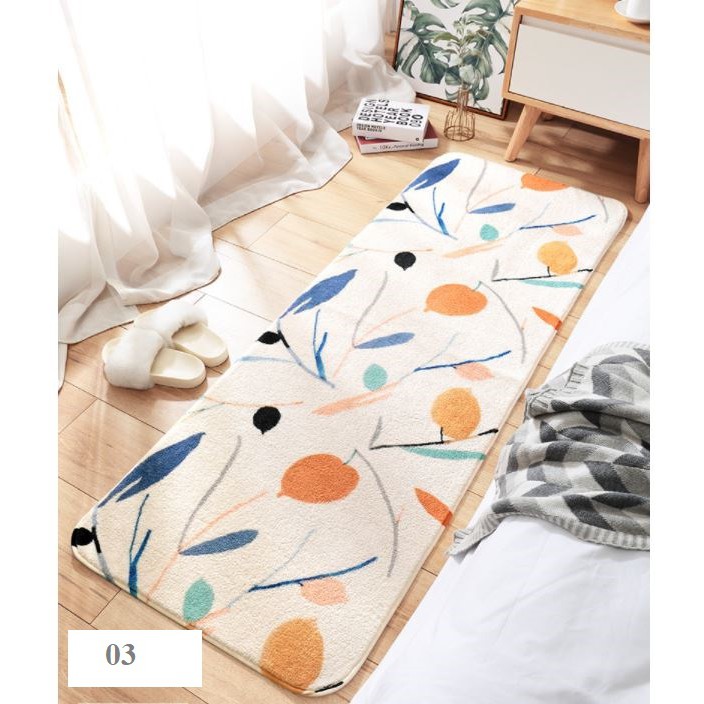 • Đặc điểm: mềm mại, dễ làm sạch, đáy thảm trống trượt, lông đan chắc chắn và không phai màu. Sợi kháng khuẩn, độ bền cao.