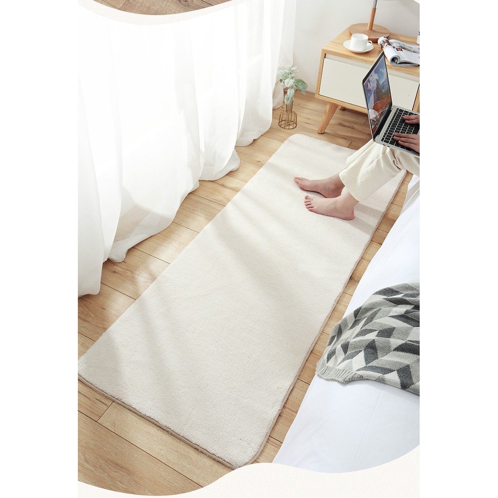 • Chất liệu: mặt trên sợi lông mềm mại; mặt dưới đế kết sợi thô dầy dặn chống trượt.