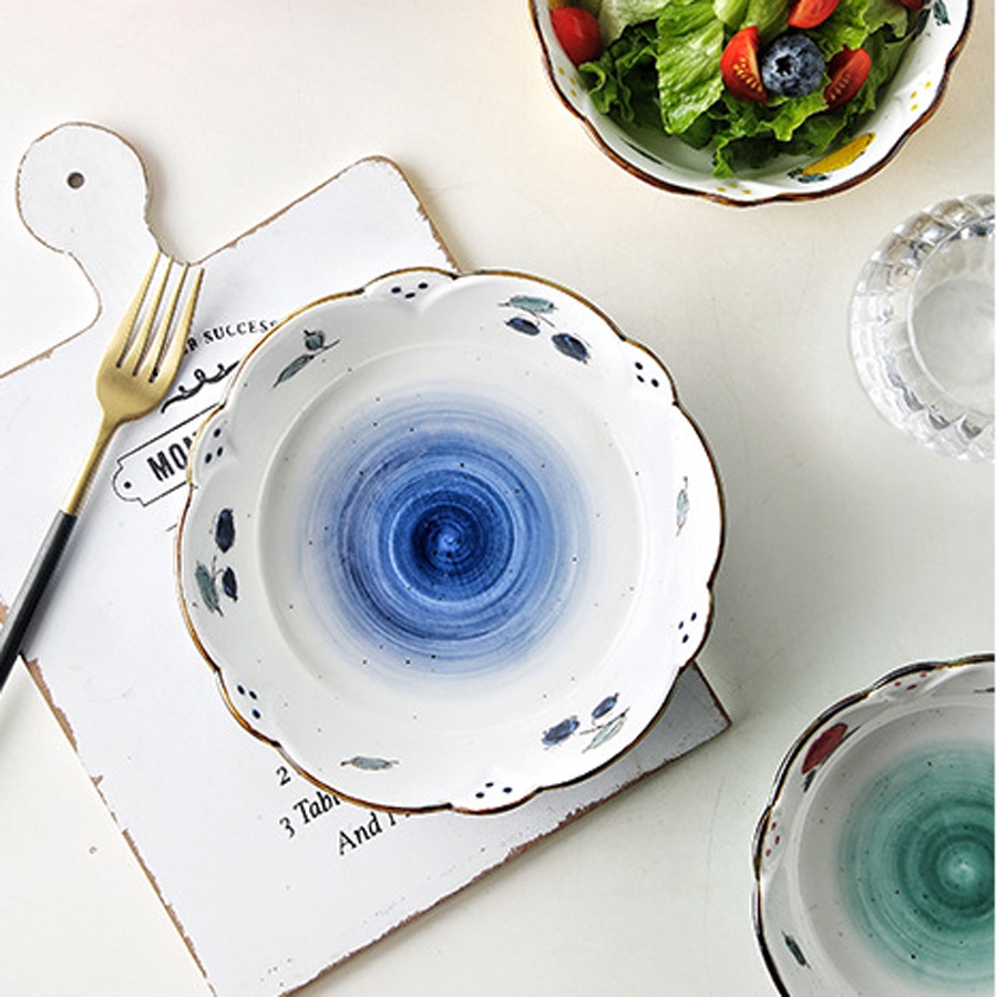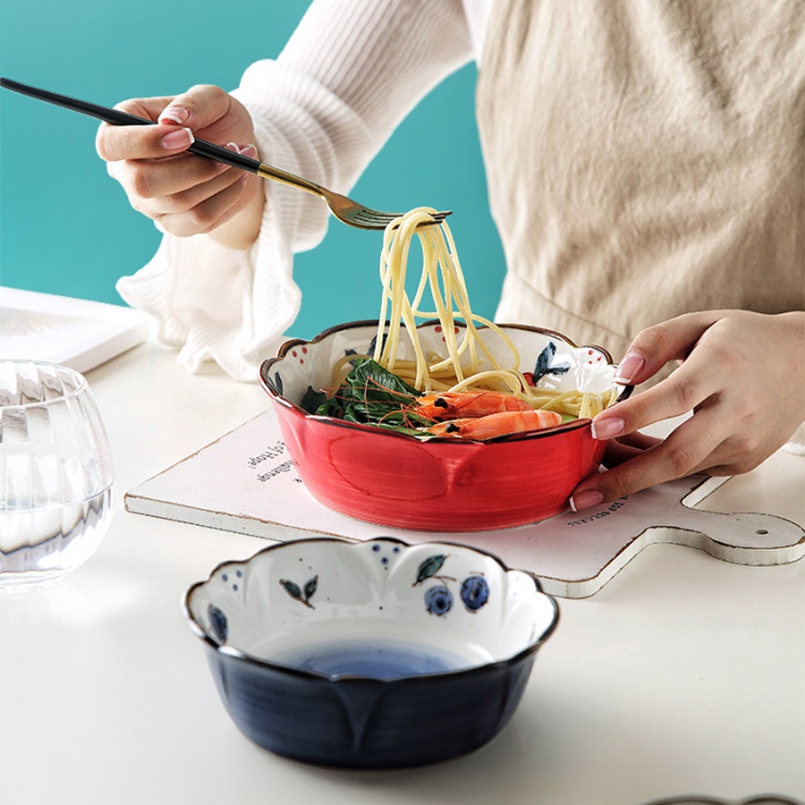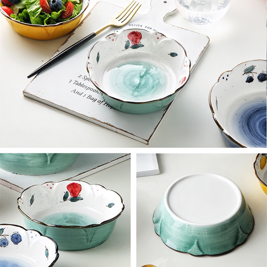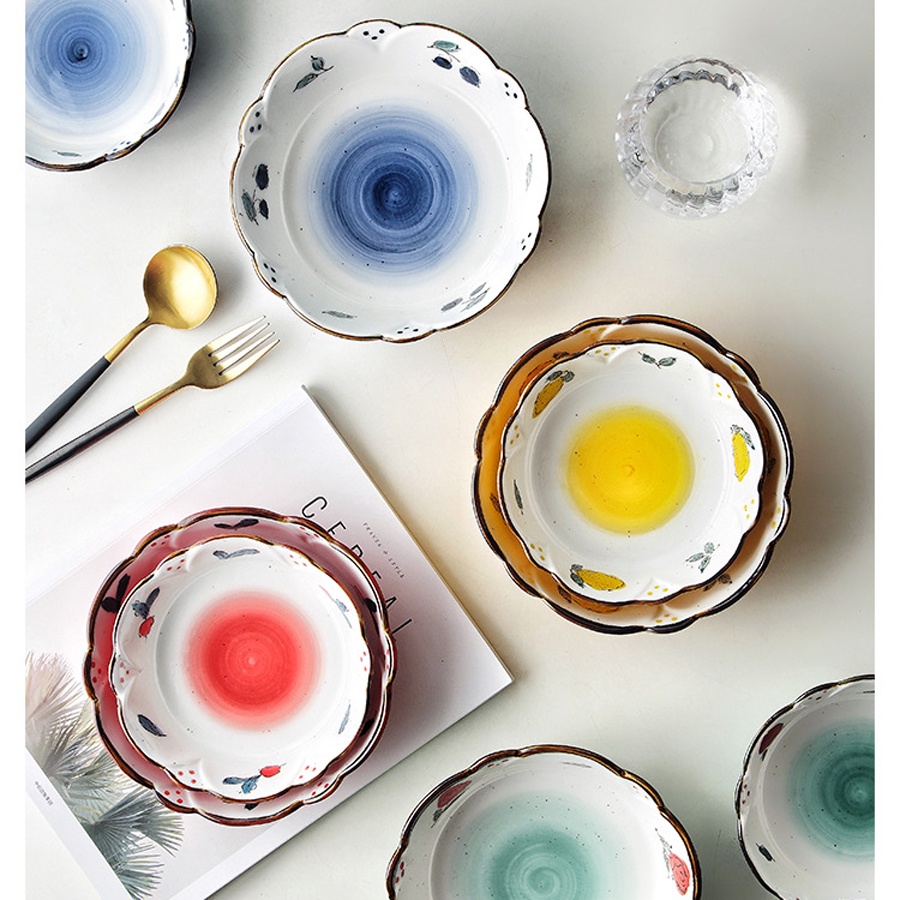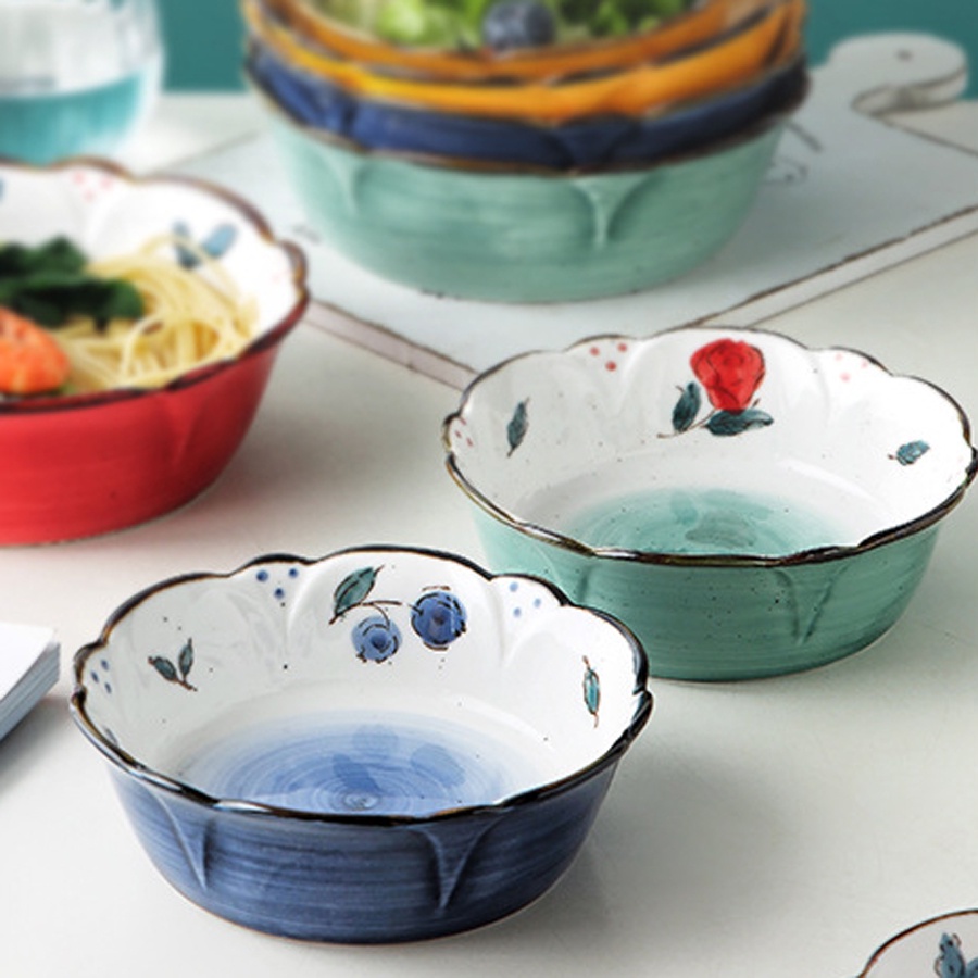 Giới thiệu [Size to] Bát sứ, bát tô viền sóng 17.8cm họa tiết hoa quả vẽ tay - 4 màu sắc