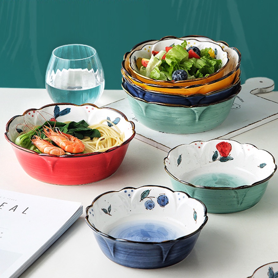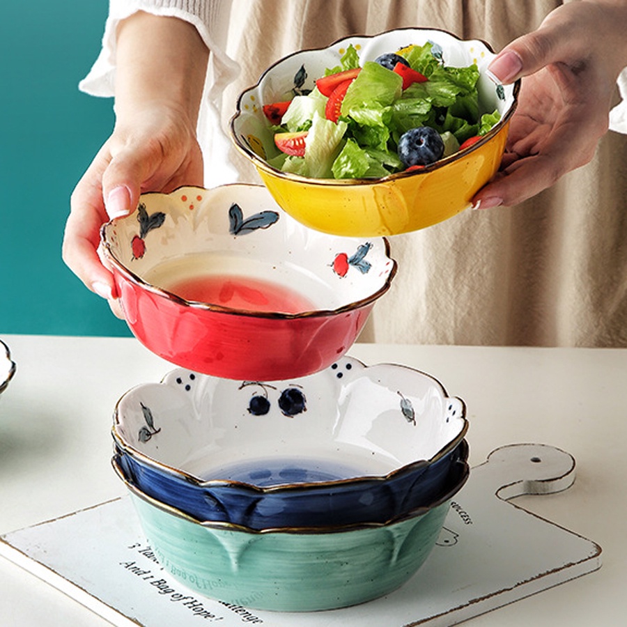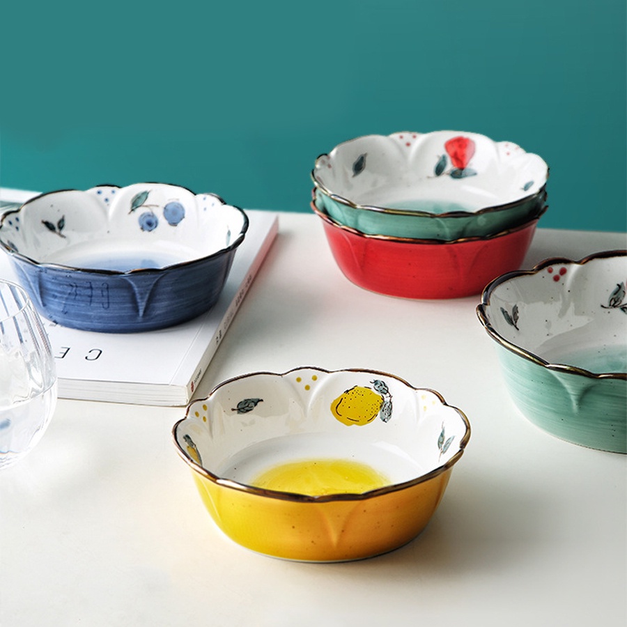Nhà cửa & Đời sống > Bộ đồ bàn ăn > Tô || [Size to] Bát sứ, bát tô viền sóng 17.8cm họa tiết hoa quả vẽ tay - 4 màu sắcCòn hàng