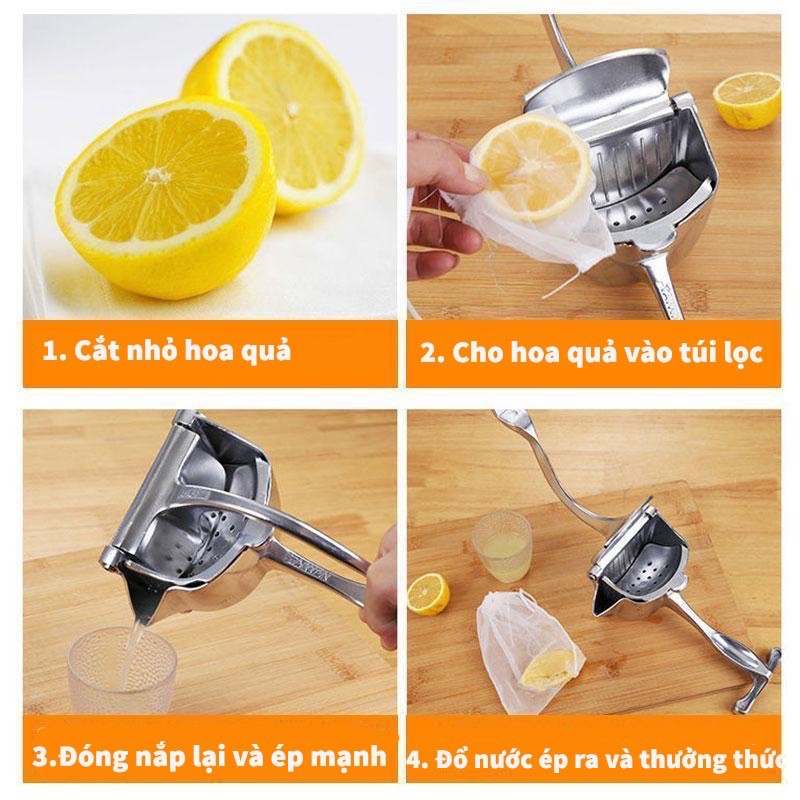 - Những dụng cụ làm bếp cầm tay tiện dụng và không tốn điện chắc chắn luôn là lựa chọn hàng đầu của nhiều chị em. Nắm bắt được nhu cầu đó, không ít sản phẩm sáng tạo đã ra đời như máy xay tỏi ớt kéo tay, máy xay cua đồng bằng tay, hay mới đây nhất là dụng cụ ép hoa quả bằng tay.Sử dụng công nghệ vắt lấy nước bằng đòn bẩy và trọng lực thay thế cho lưỡi dao cắt thông thường, khả năng ép kiệt đến 95%. Nước ép vẫn giữ được độ đậm đặc, giữ nguyên hương vị và vitamin tự nhiên vốn có của trái cây.Máy ép hoa quả, trái cây cầm tay thép nguyên khối bền đẹp không gỉ an toàn tuyệt đối