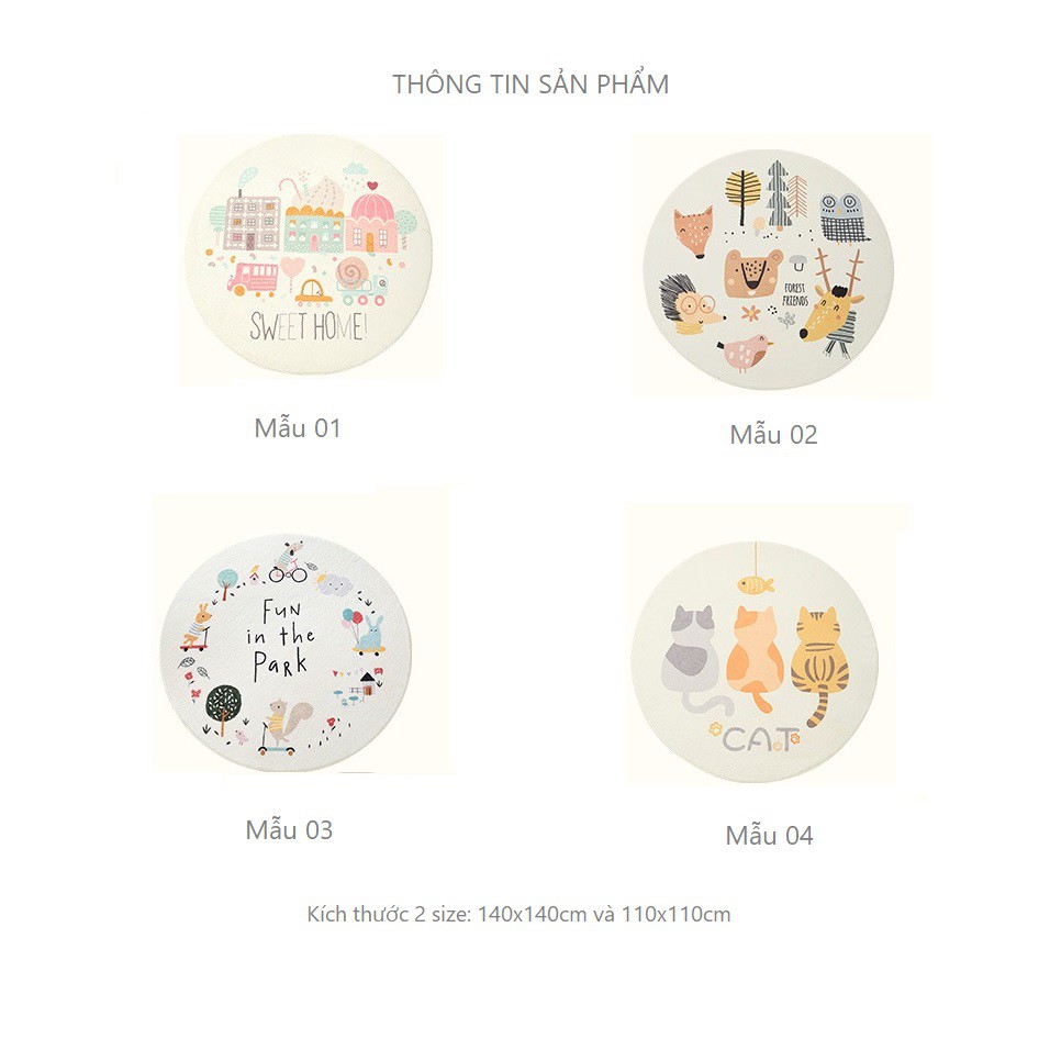 - Các kích thước: Bạn muốn size to để trải sàn rộng có thể chọn kích thước 140x140cm, 110x110cm.