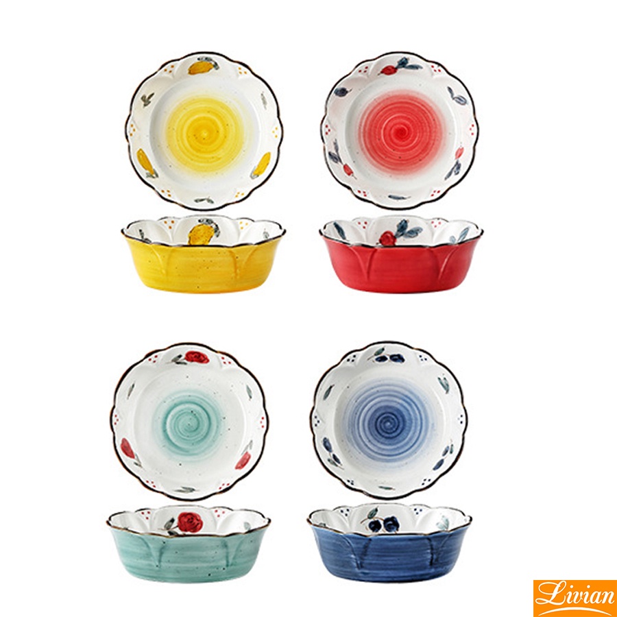 Nhà cửa & Đời sống > Bộ đồ bàn ăn > Tô || [size to] Tô sứ tròn, bát sứ viền sóng 17.8cm họa tiết hoa quả vẽ tay nhiều màu sắc- Hàng có sẵnCòn hàng