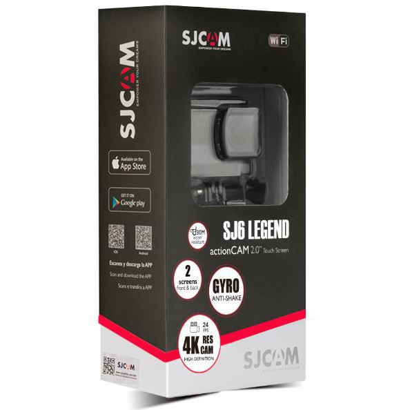 SJ Cam SJ6 Legend (Camera Cao Cấp Của SJ Cam)SJ6 Legend là một chiếc camera cao cấp của SJCam với khả năng quay 4K sắc nét, chân thực khi được trang bị Chip Novatek 96660 cao cấp, cảm biến Panasonic MN34120PA. Cùng với khả năng chống rung Gyro sẽ làm cho video của bạn trờ nên mượt mà hơn bao giờ hết. Ngoài ra, Sjcam SJ6 Legend còn có màn hình cảm ứng 2 inch, hỗ trợ lỗ cắm míc ngoài và có thể điều khiển bằng remote dời ( mua thêm).