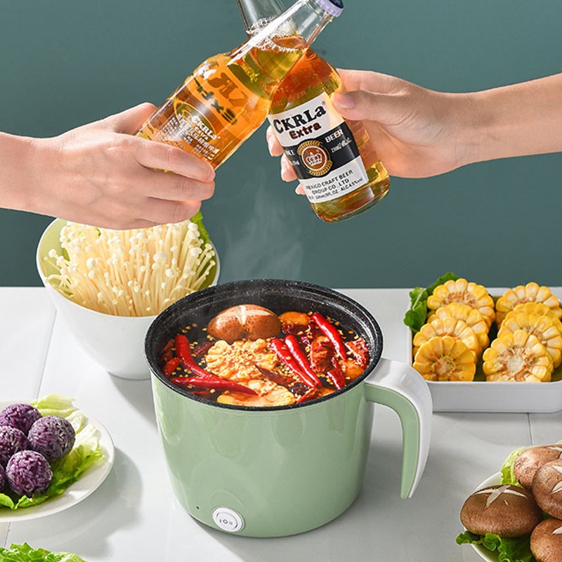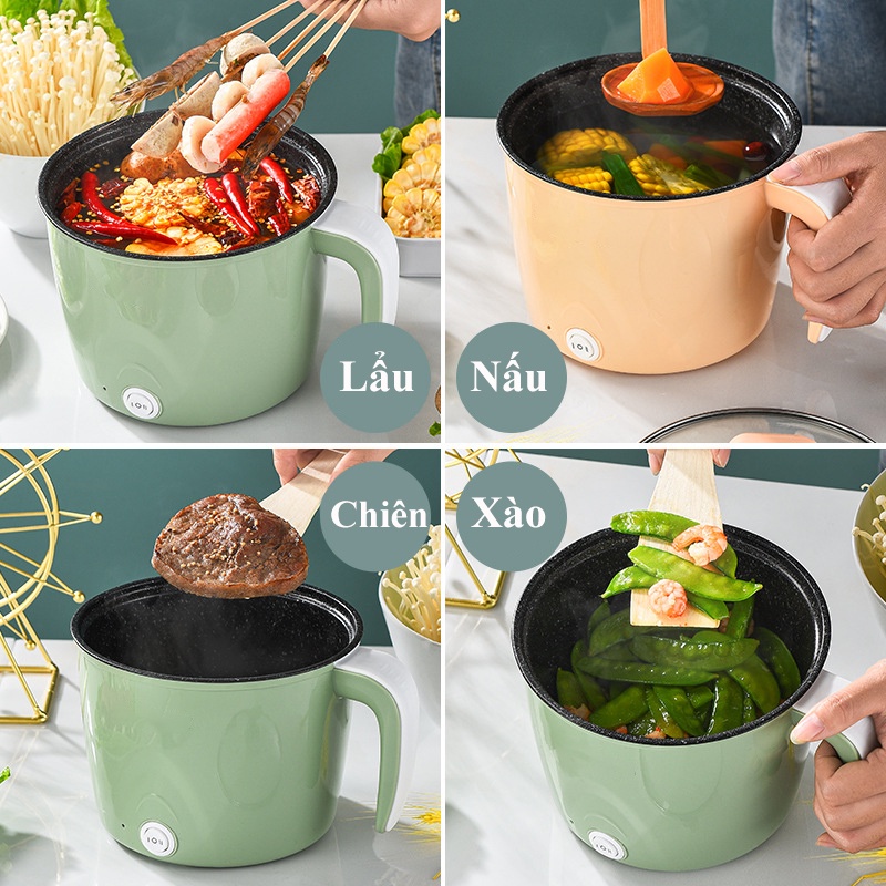 - Nồi điện mini giúp bạn nhanh chóng có được những món ăn ưa thích như: mỳ phở ăn liền, lẩu, các món kho và luộc, nấu cháo, hâm nóng thức ăn, đun nước…