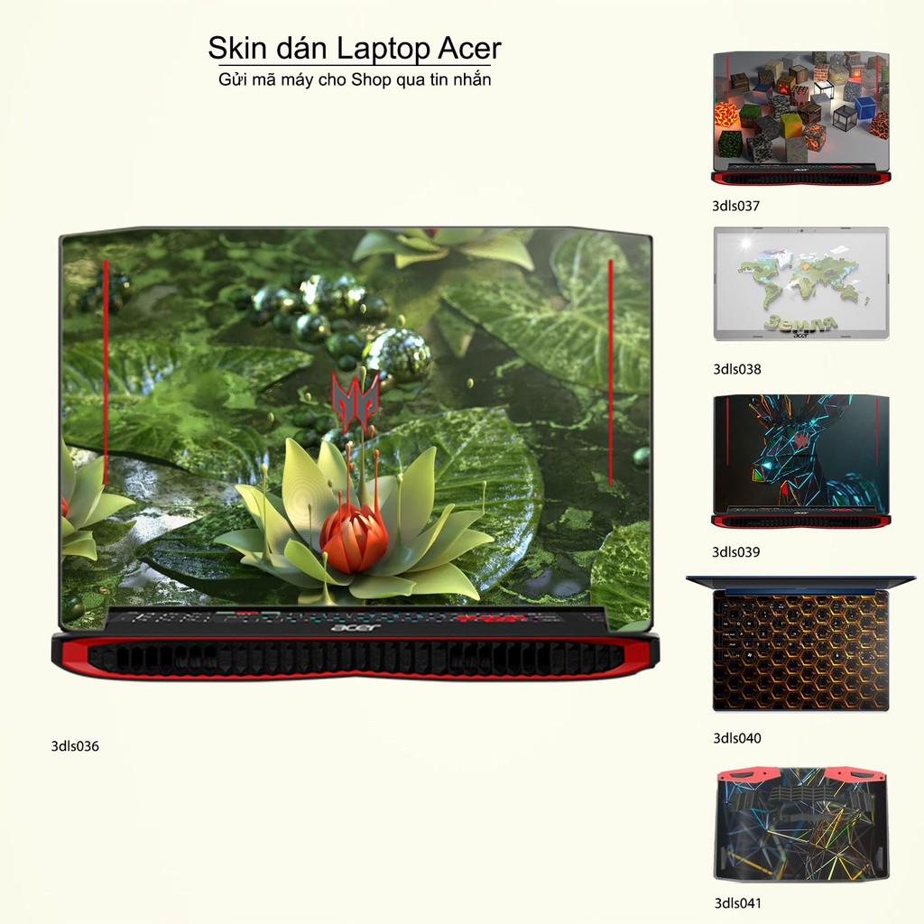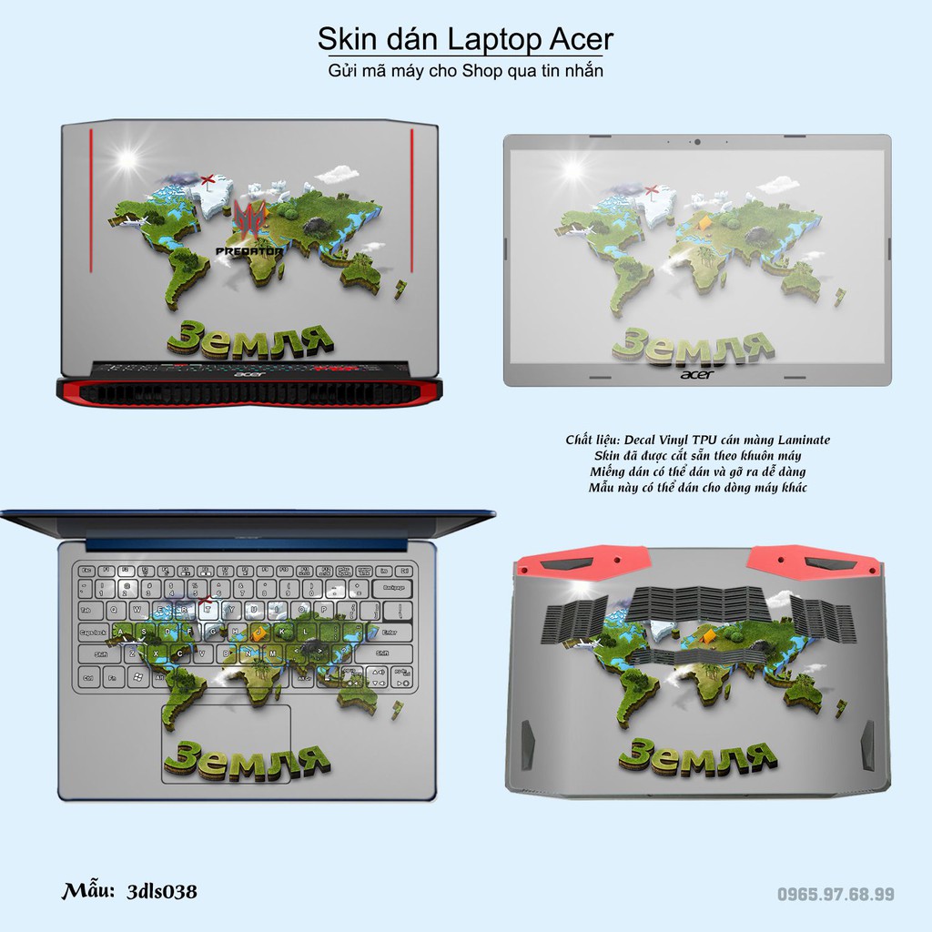 Máy tính & Laptop > Phụ Kiện Máy Tính > Miếng Dán & Ốp Laptop || Skin dán Laptop Acer in hình 3D Green (inbox mã máy cho Shop)Còn hàng