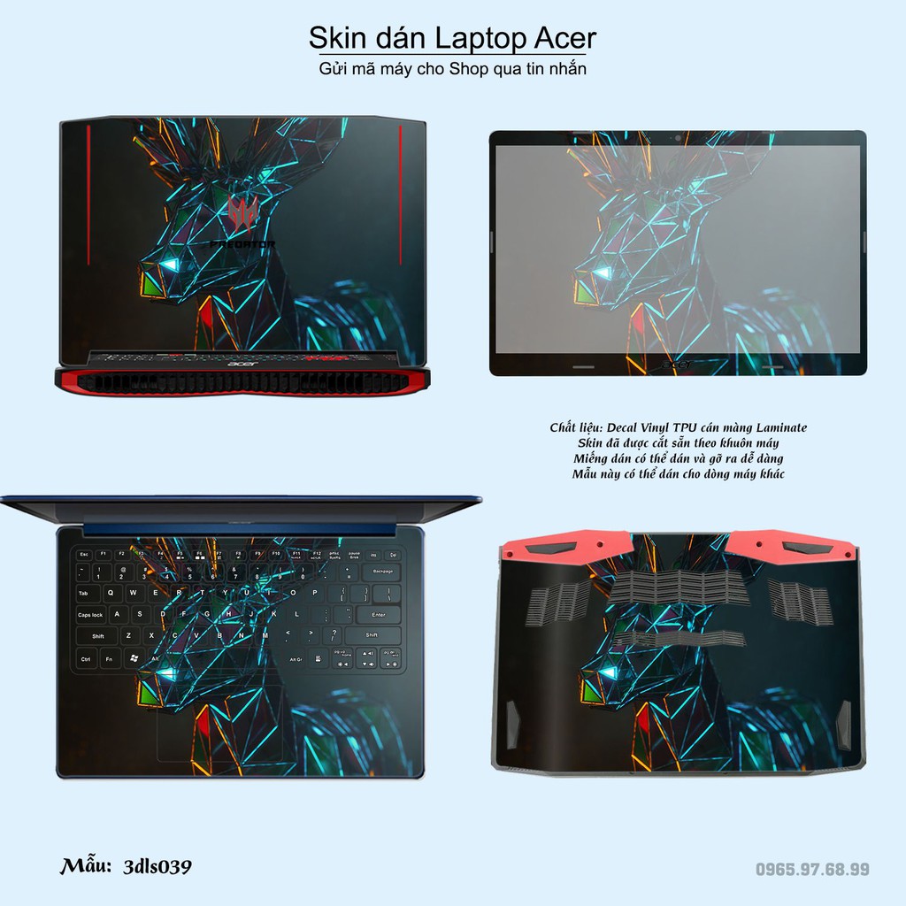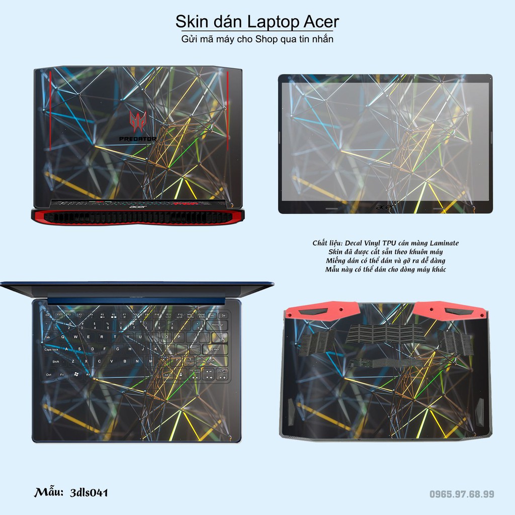 Skin dán là phương pháp tối ưu để làm đẹp và bảo vệ chiếc Laptop Acer của bạn,Miếng dán đã được cắt sẵn theo khuôn máy, cắt chính xác các chi tiết như camera, cảm biến, logo, bàn phím...