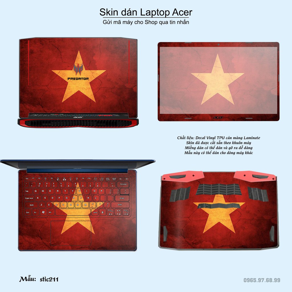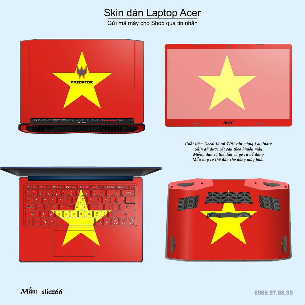 Máy tính & Laptop > Phụ Kiện Máy Tính > Miếng Dán & Ốp Laptop || Skin dán Laptop Acer in hình cờ Việt Nam (inbox mã máy cho Shop)Còn hàng